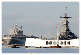The World War II Valor in the Pacific National Monument is a United States national monument honoring several aspects of American engagement in World War II. It encompasses 9 sites in 3 states totaling 6,310 acres. In Hawaii: USS Arizona Memorial, USS Utah Memorial, USS Oklahoma Memorial, Six Chief Petty Officer Bungalows on Ford Island and the Mooring Quays F6, F7, and F8, which formed part of Battleship Row. In Alaska: Battlefield remnants on Attu Island, More