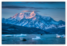 Mount Saint Elias, also designated Boundary Peak 186, is the second highest mountain in both Canada and the United States, being situated on the Yukon and Alaska border. The mountain is a giant granite rock that was lifted above Earth’s crust during a period of tectonic activity that began over 60 million years ago. It rises abruptly some 18,000 feet from Denali Fault at its base to the higher, more southerly of its two summits. The upper half of the mountain is covered with snowfields that feed many glaciers, some surpassing 30 miles in length.