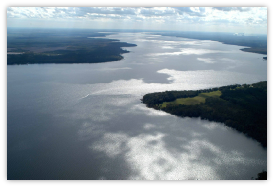 The St. Johns River is the longest river in the Florida and its most significant for commercial and recreational use. Its 310 mile length winds through or borders twelve counties, three of which are the state's largest. The drop in elevation from the headwaters to the mouth is less than 30 feet- like most Florida waterways, the St. Johns has a very slow flow rate at a third of a mile an hour and is often described as "lazy". It is one of a small number of rivers in the United States to run south to north. Numerous lakes are formed by the river or flow into it, but as a river its widest point is nearly 3 miles across.