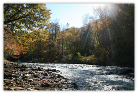 The waters of the Pigeon River start to flow from the top of the Blue Ridge Mountains in Haywood County North Carolina. A series of beautiful cascading waterfalls carries the waters into Tennessee through the Smokey Mountains. Recreational rafting is popular in two sections of the river, the Upper and the Lower and features Class III-IV whitewater rapids. The Lower section features gentle waves and beautiful scenery. In North Carolina, the Pigeon River is a fly fisherman’s dream. Enjoy!